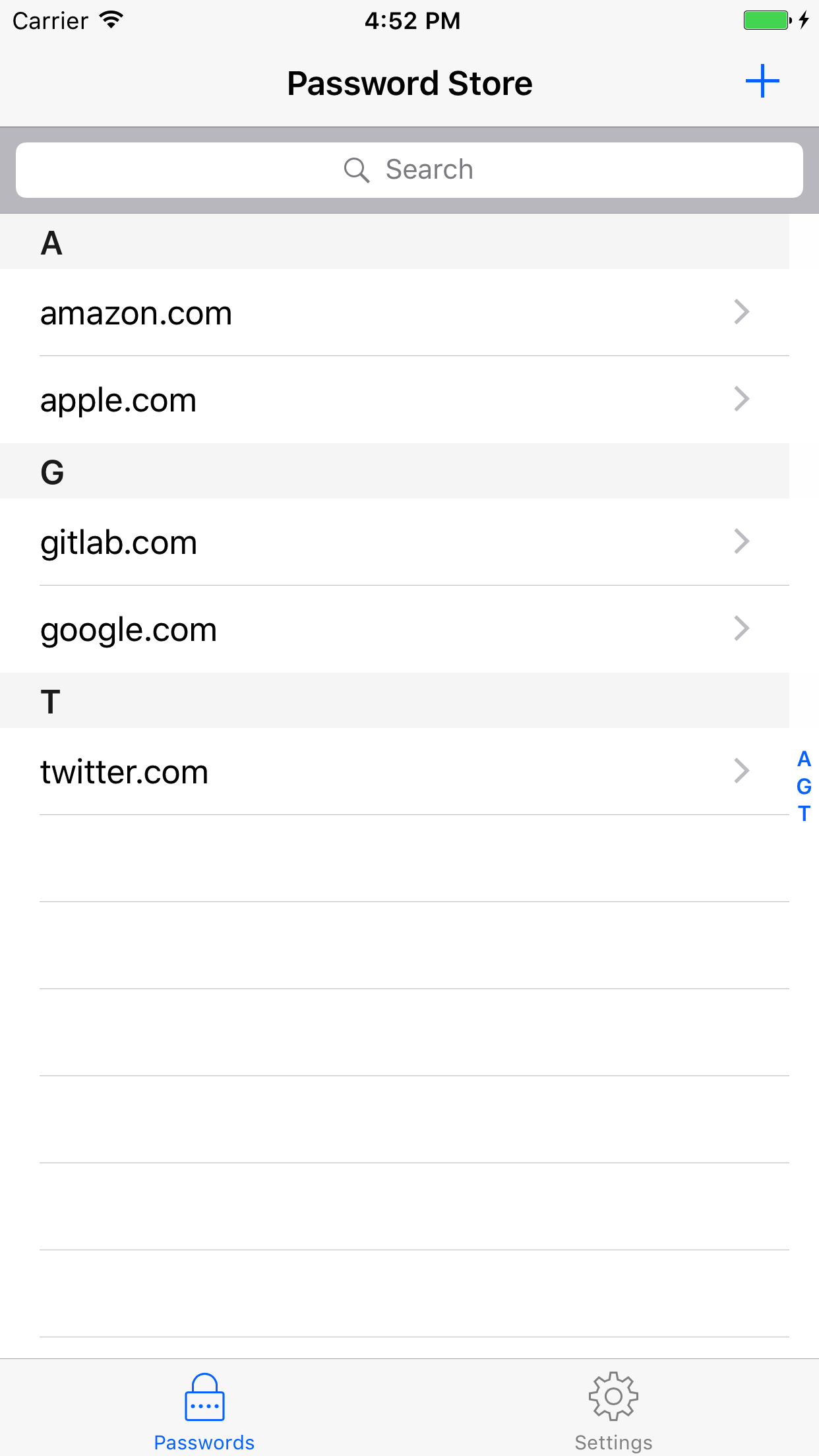 Pass is an iOS client compatible with ZX2C4's Pass command line application. It is a password manager using GPG for encryption and Git for version control.